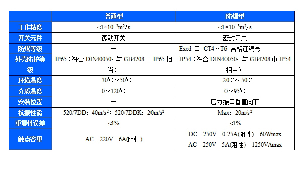 规格:切换差不可调